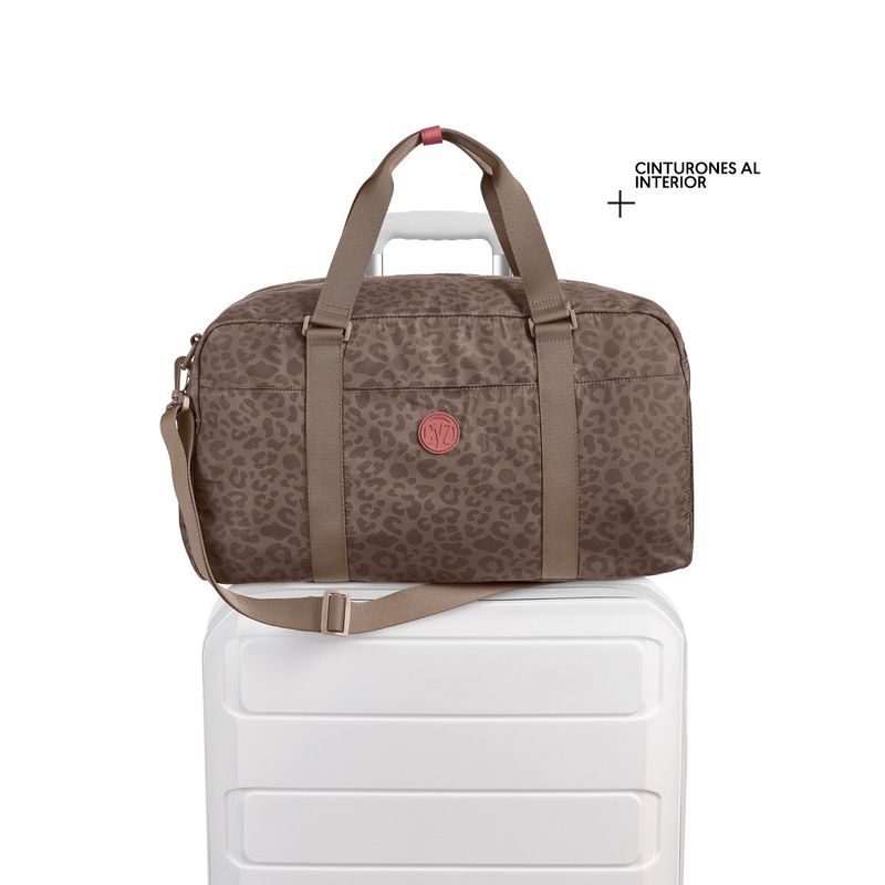 Maletín animal print en material poliéster carry on, con bolsillo amplio y straps. Ideal para viajar