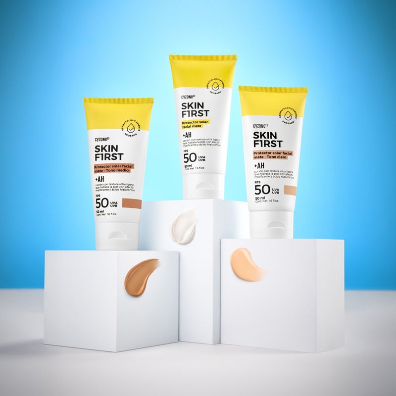 Bloqueador con color SPF 50 con Ácido Hialurónico: hidrata, protege y deja acabado mate. Medidas aproximadas: Alto: 120mm; Ancho: 35mm, Fondo: 54mm